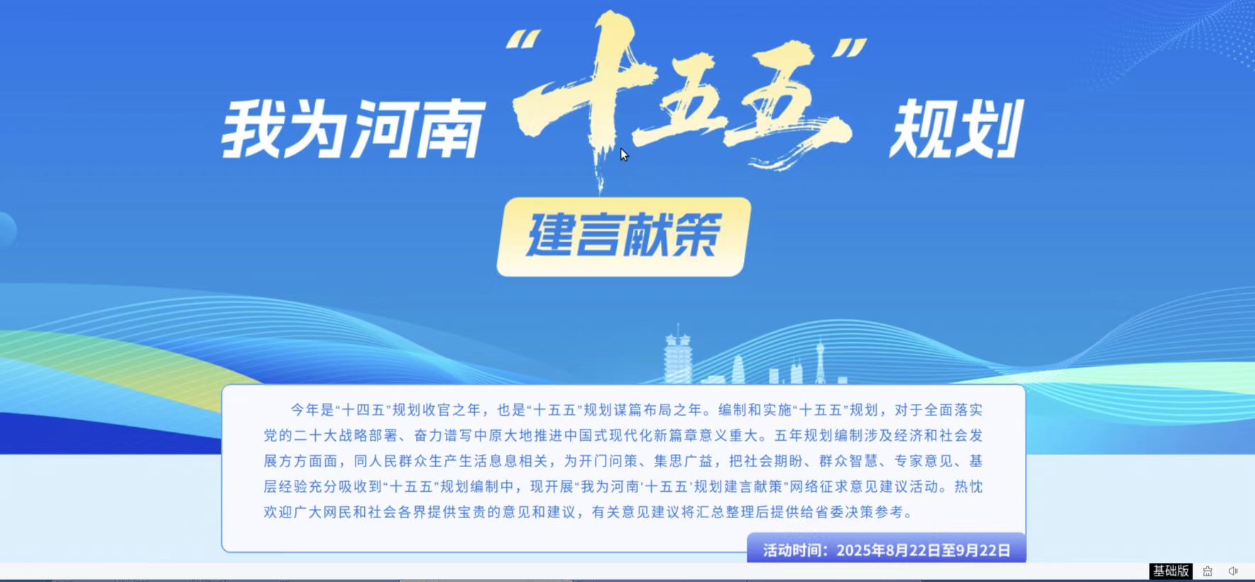 • 關(guān)于開展“我為河南‘十五五’規(guī)劃建言獻策”網(wǎng)絡(luò)征求意見建議活動的公告